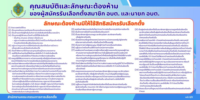 หัวข้อ :: ประชาสัมพันธ์คุณสมบัติและลักษณะต้องห้ามของผู้สมัครรับเลือกตั้งสมาชิกสภาองค์การบริหารส่วนตำบลและนายกองค์การบริหารส่วนตำบล